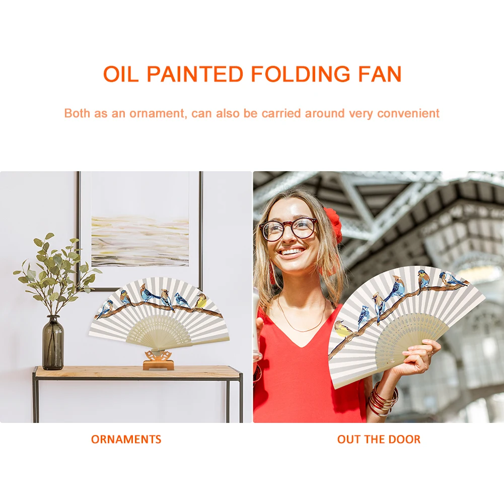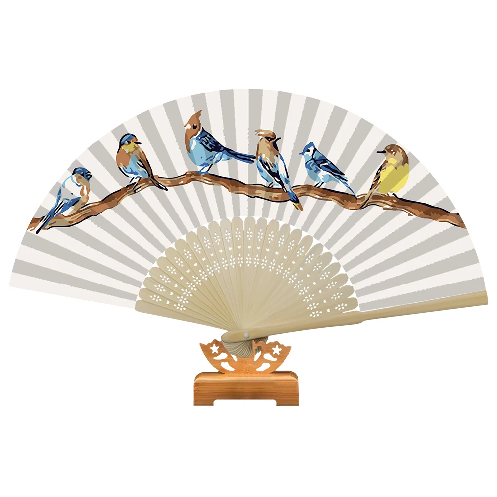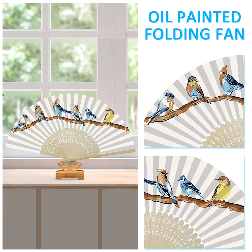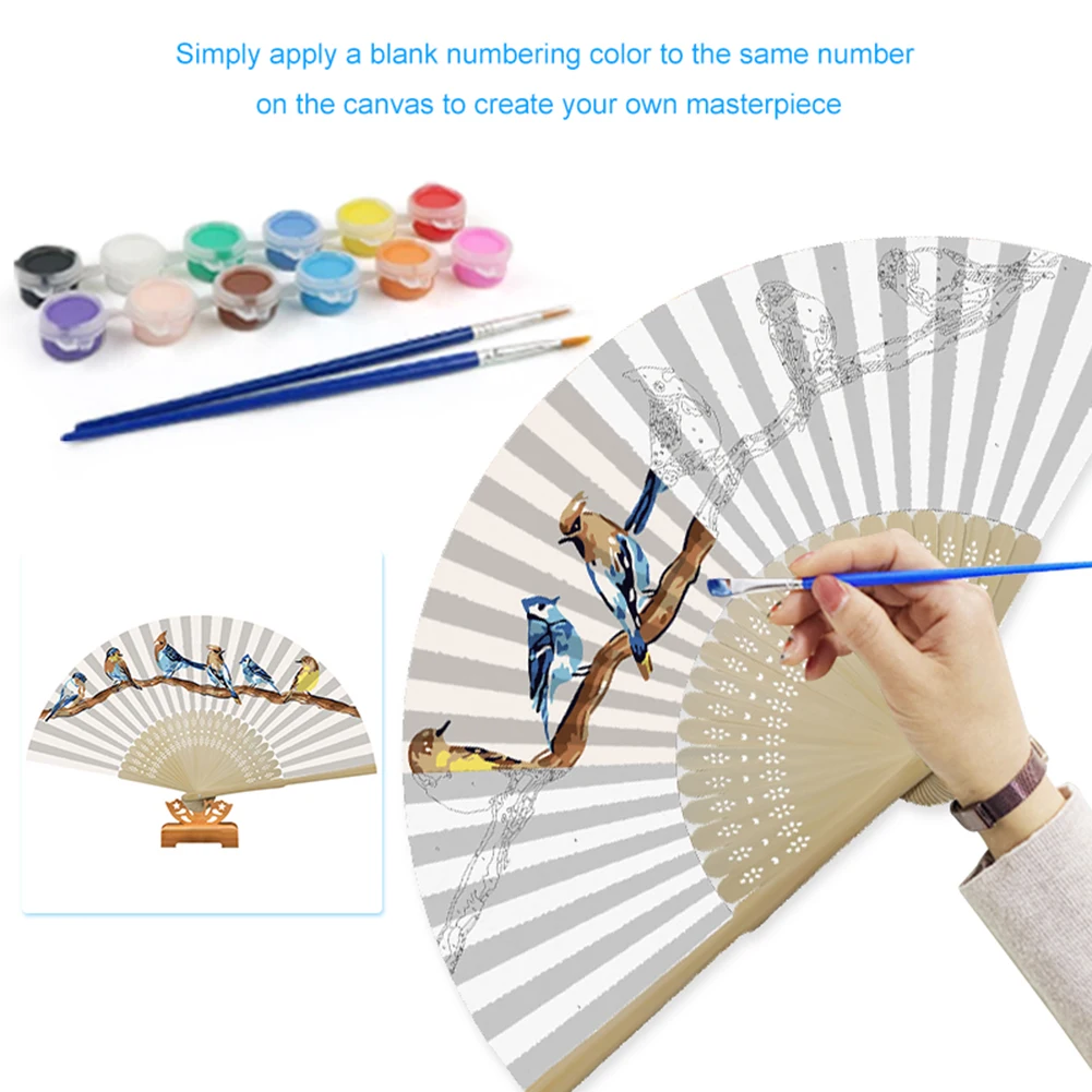 Набор для рисования масляными красками ручной работы, сделай сам, для птиц на ветке, складной веер, ручная роспись, картина маслом, складной веер с цветами, птицами