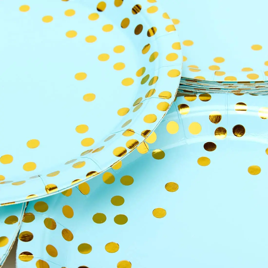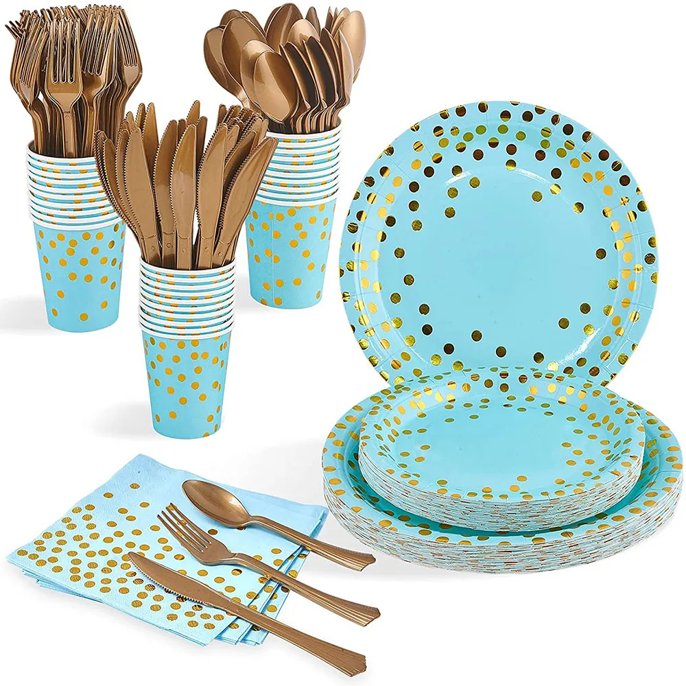 Синее золото, праздничные одноразовые столовые приборы, синие бумажные тарелки, салфетки, чашка, Золотые пластиковые вилки, ложка для рождества, Baby Shower