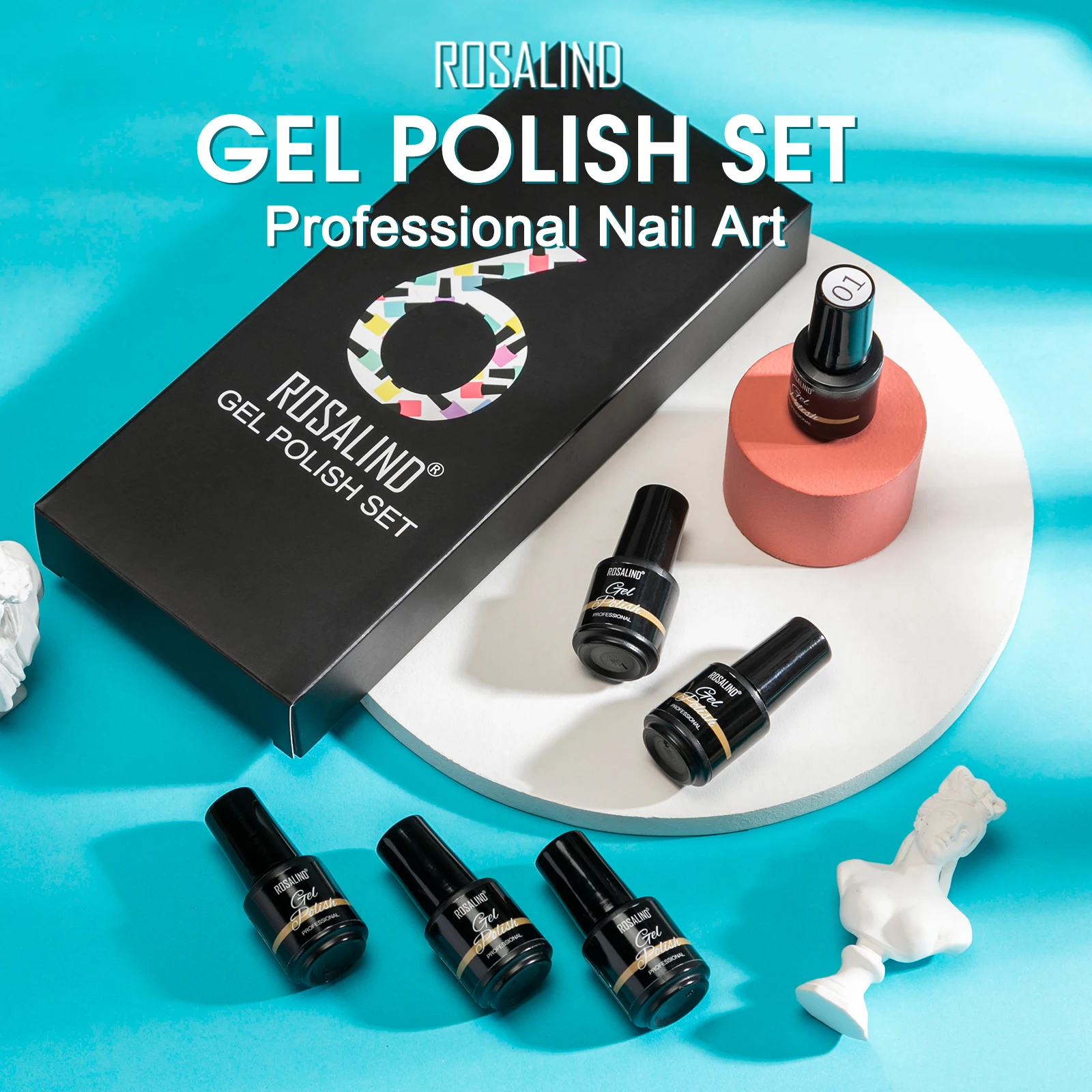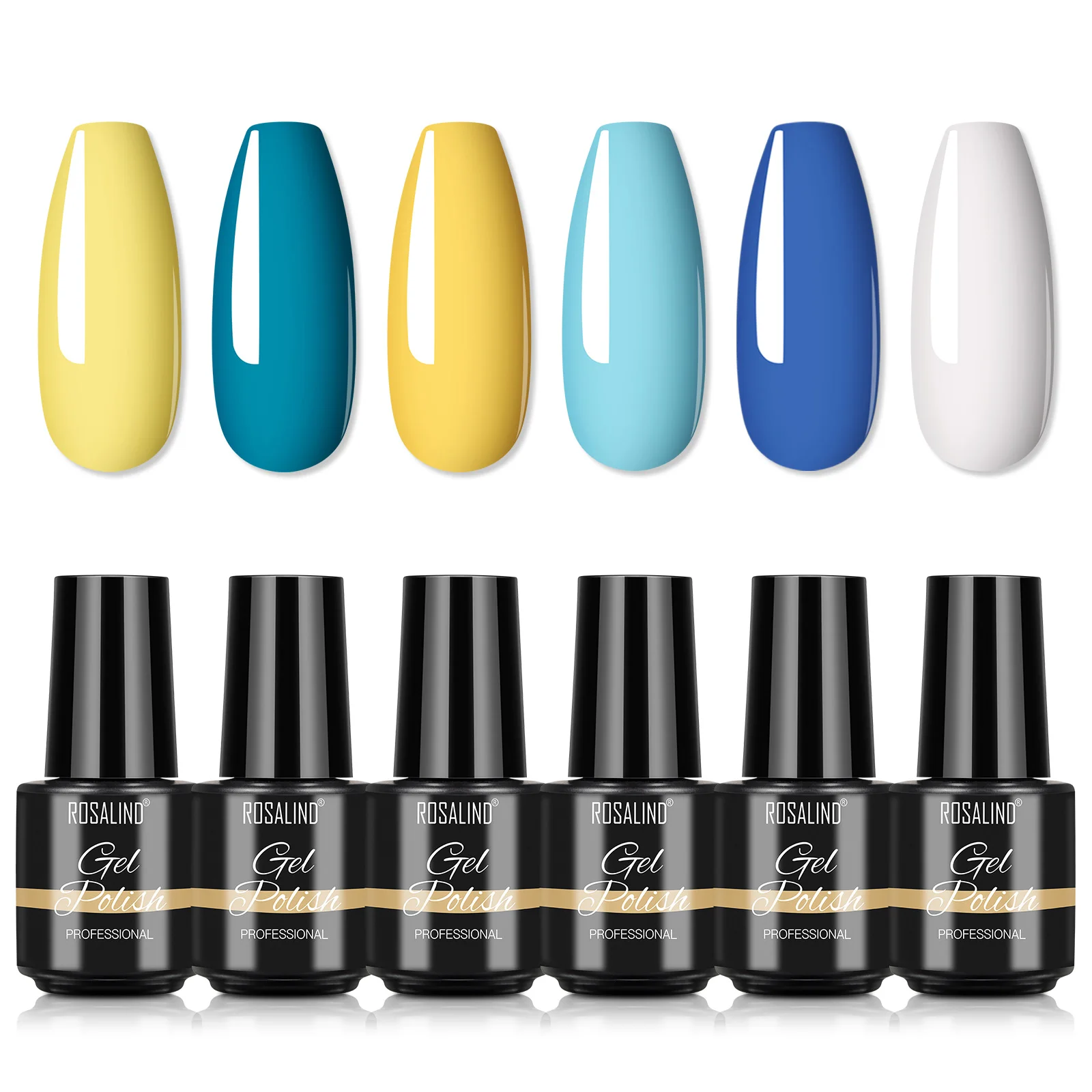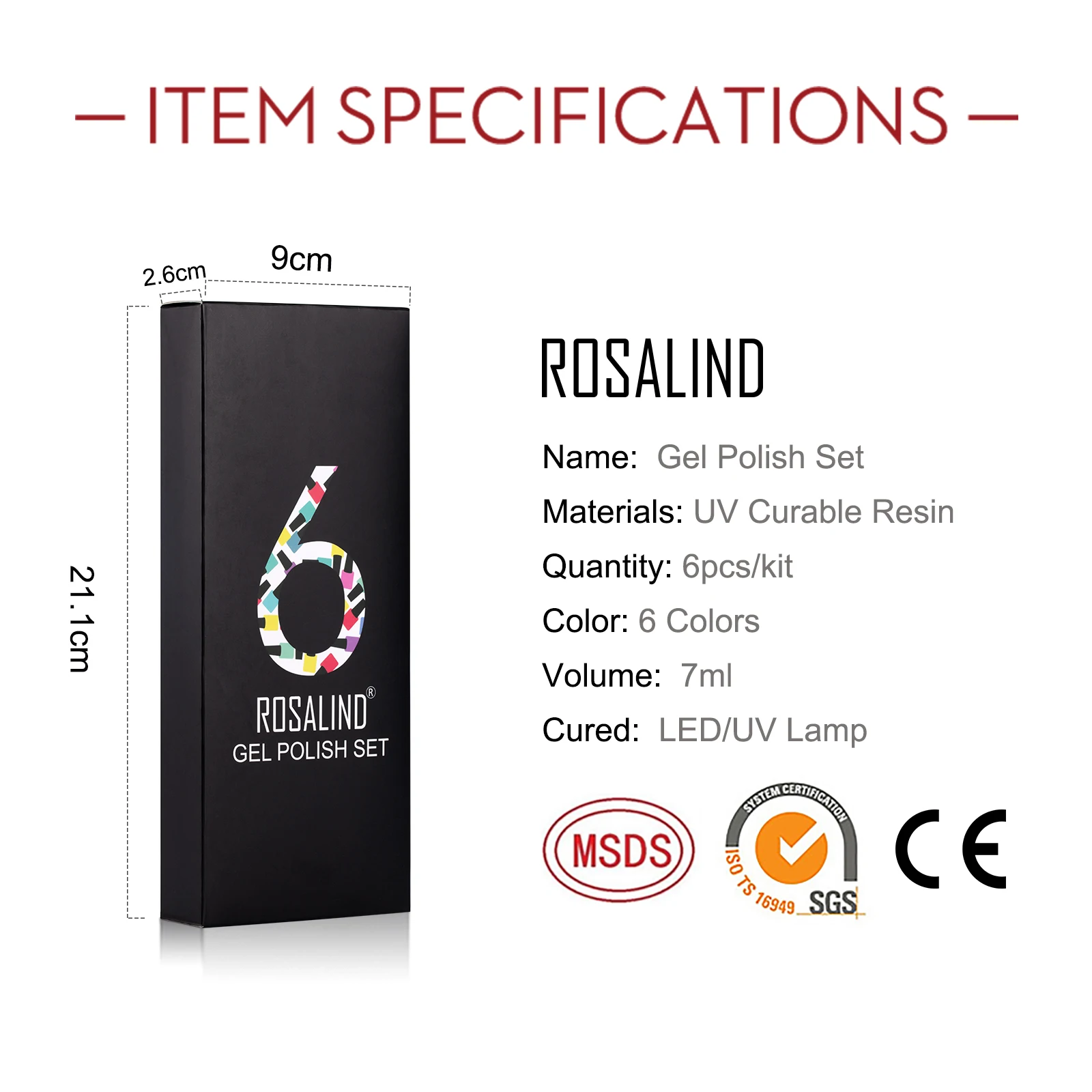 ROSALIND летний цветной набор гель-лаков для ногтей 6 шт. 7 мл Гибридный лак все для маникюра блеск для ногтей гель лак лечение УФ светодиодный светильник