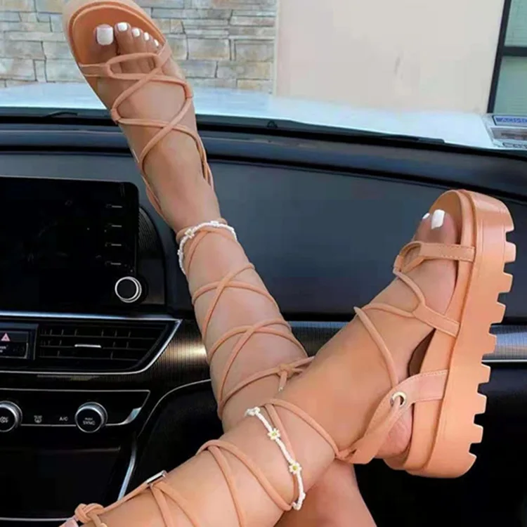 Женские сандалии-гладиаторы на платформе, женские босоножки с ремеш...