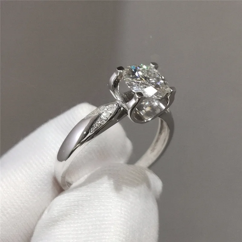 Женское классическое кольцо из серебра 18 К с муассанитом 1-5 карат
