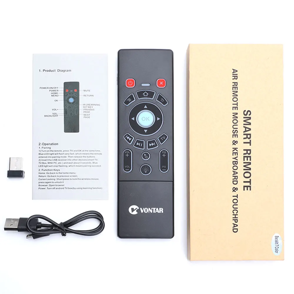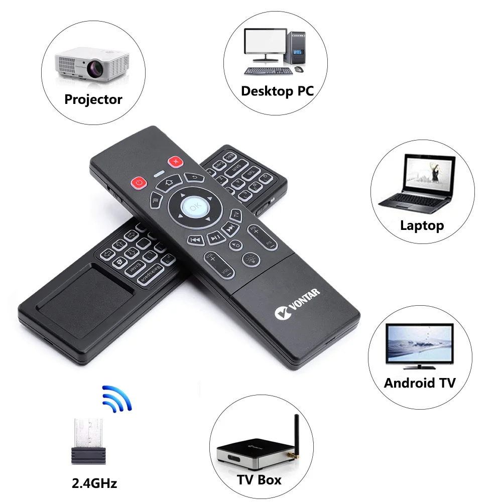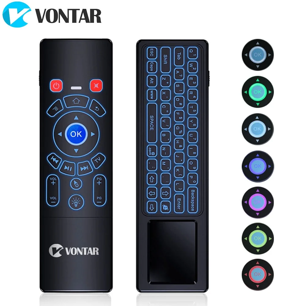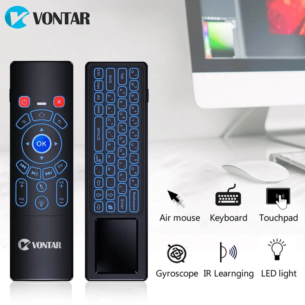 Беспроводная клавиатура VONTAR T6 Plus с подсветкой 2,4 GHz Air mouse и пульт дистанционного управления с тачпадом для Android TV Box Мини-ПК проектор