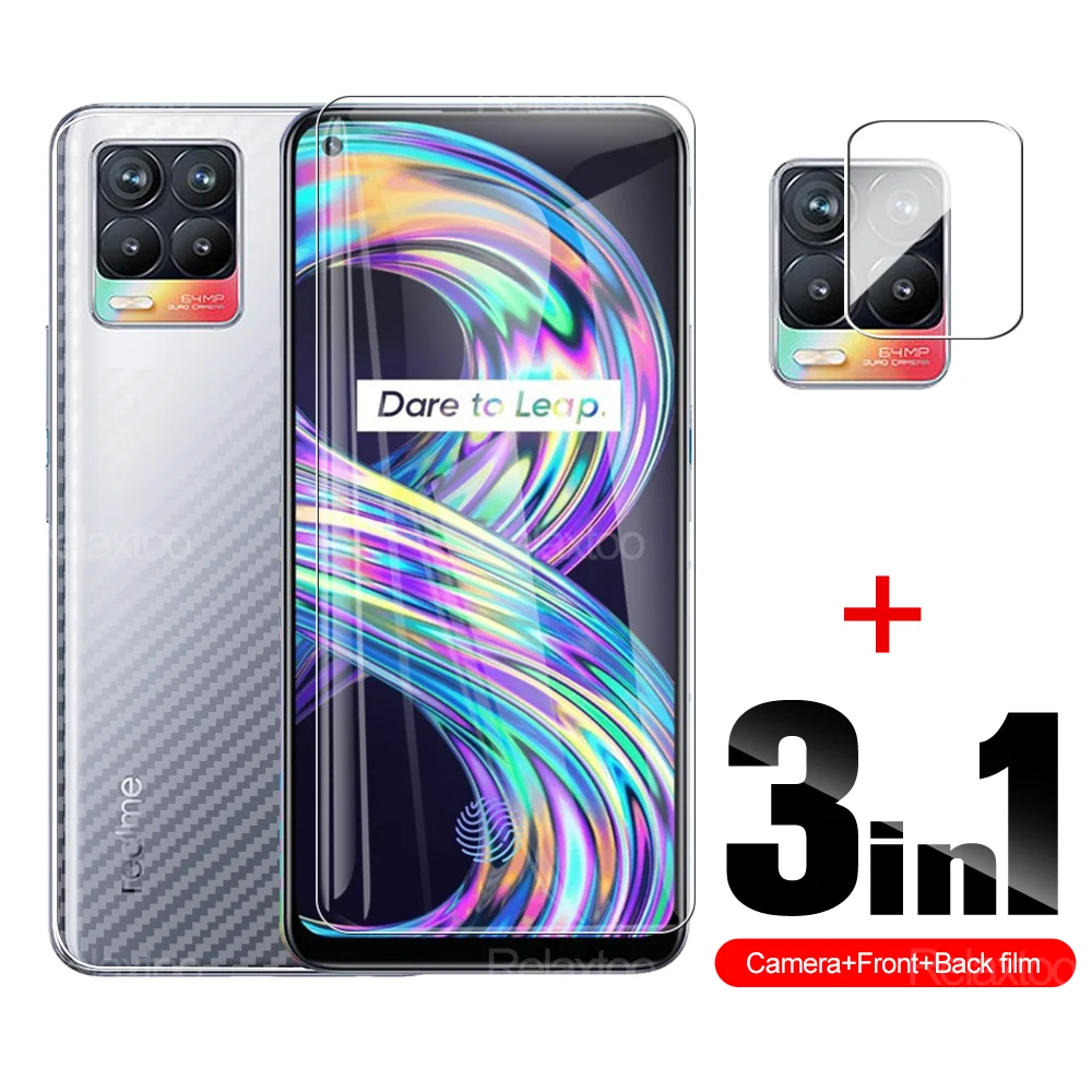 3-в-1 с уровнем твердости 9H для передней панели + мягкие контактные линзы + волокна наклейка на заднюю часть для Oppo Realme фотокамеры мгновенного действия 8 7 7i 5 Pro 5G Экран протектор Безопасность Стекло для Realme8 реальную меня
