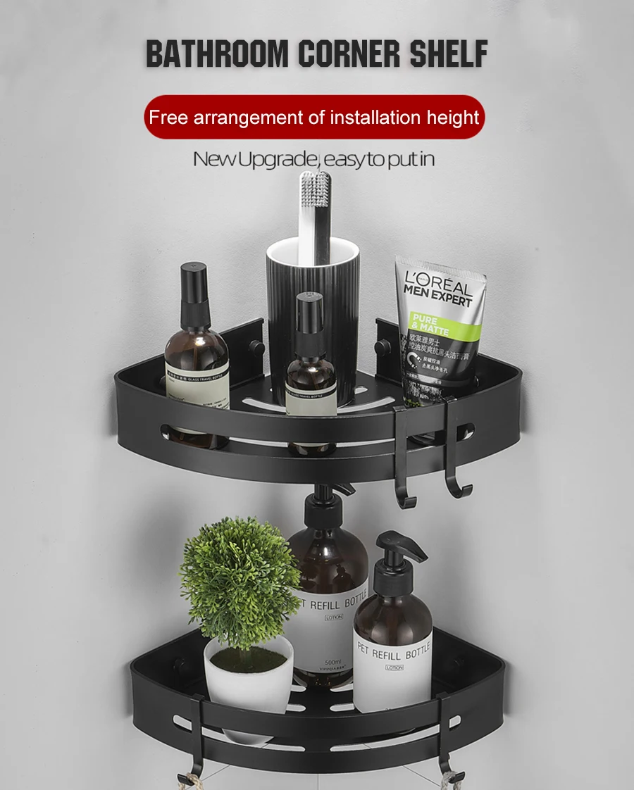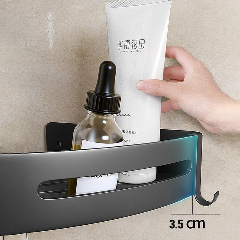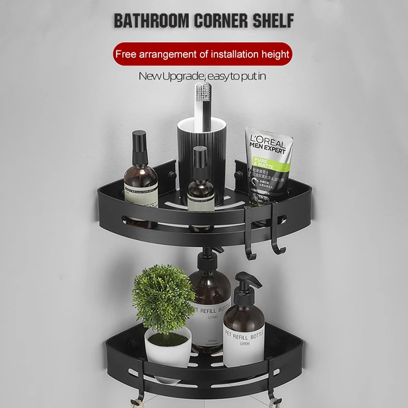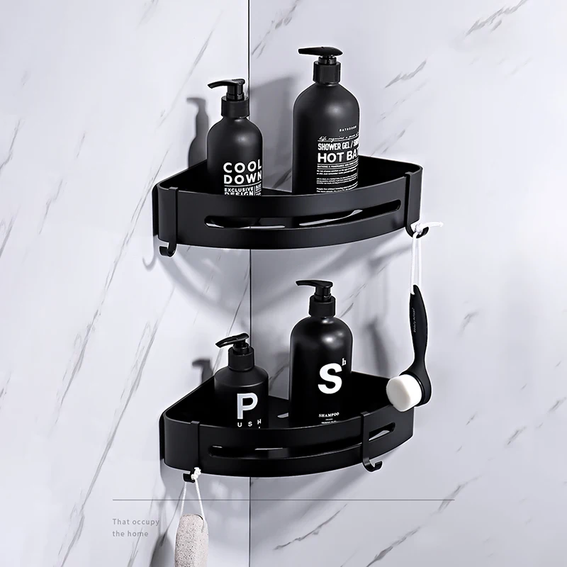 Треугольная стойка для хранения полотенец и душа, черные угловые полки, Настенный алюминиевый держатель для шампуня, аксессуары для ванной комнаты