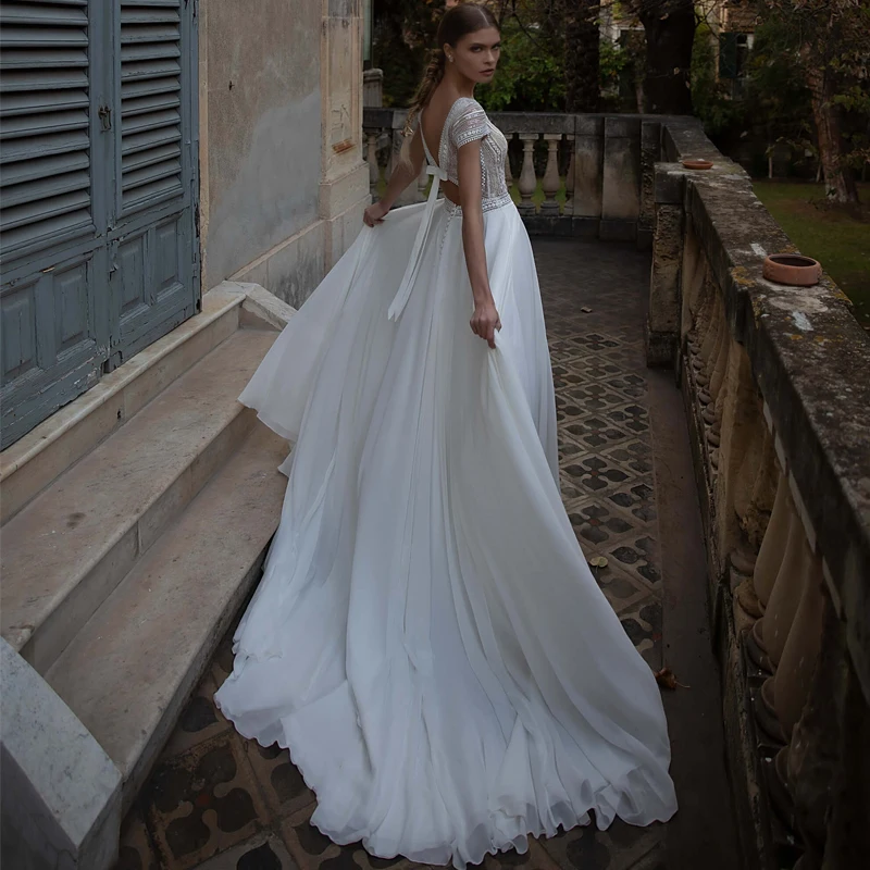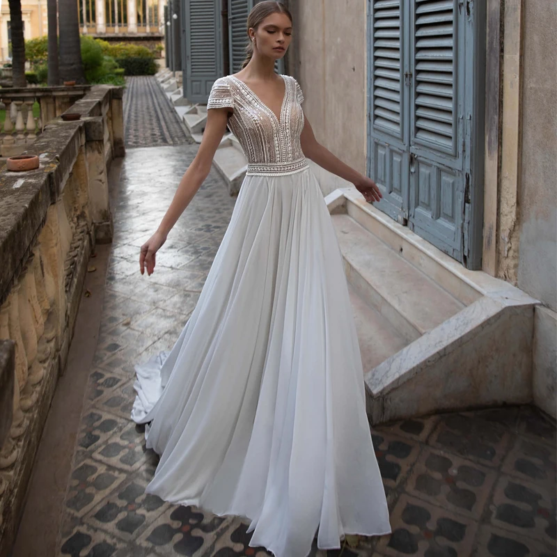 Свадебное платье LORIE в стиле бохо, шифоновое платье невесты с глу...