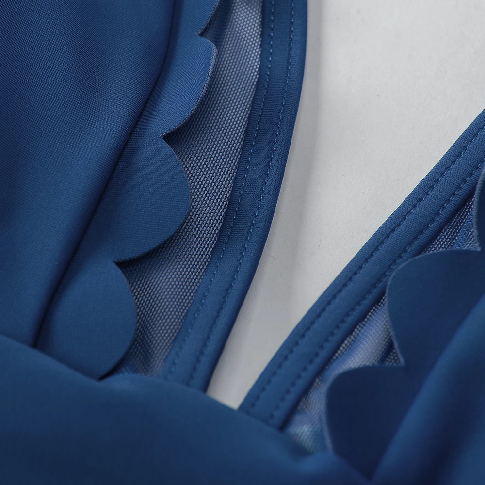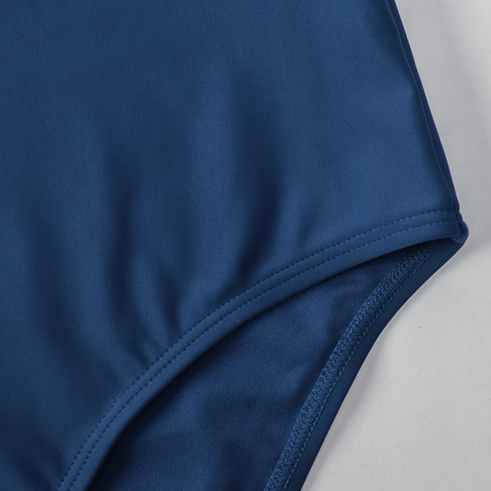 SEASELFIE Блестящий Синий Цельный купальник с V-образным вырезом дл...