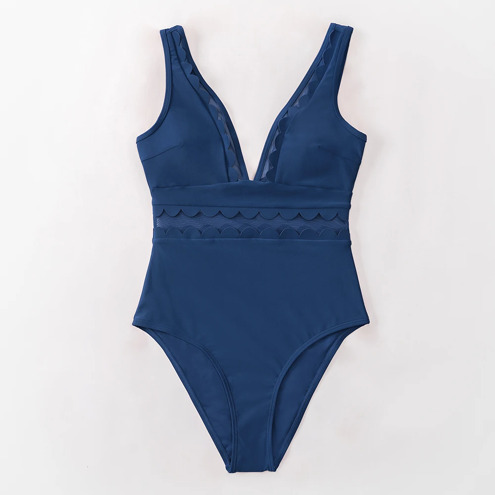 Сплошной синий слитный купальник Cupshe, женское монокини с V-образ...
