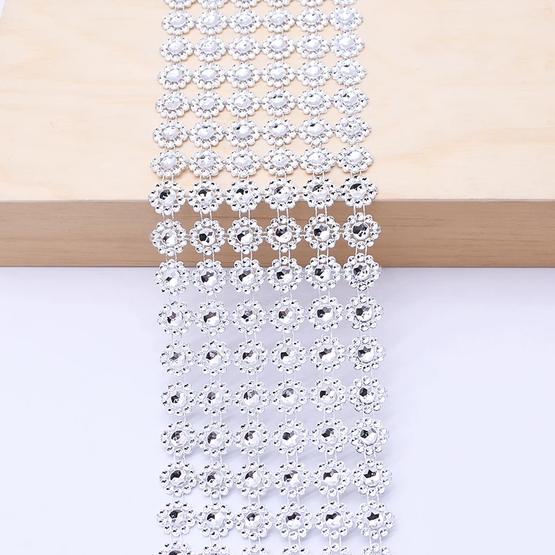 1 ярд, серебряная Подсолнух, искусственная Алмазная лента, акриловая сетчатая оберточная лента с цветами для украшения свадебной вечеринки