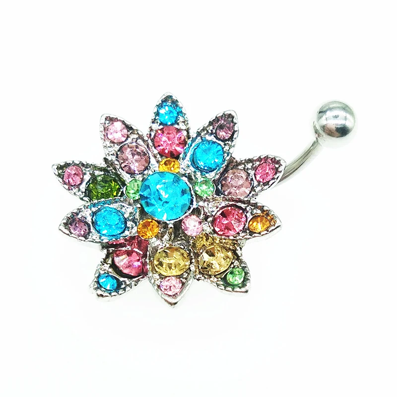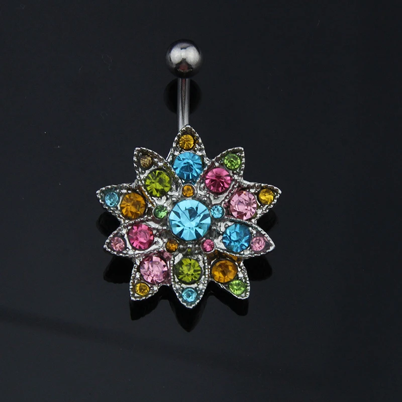 Модные сексуальные пирсинг пупка Украшения для тела цветок кулон кр...