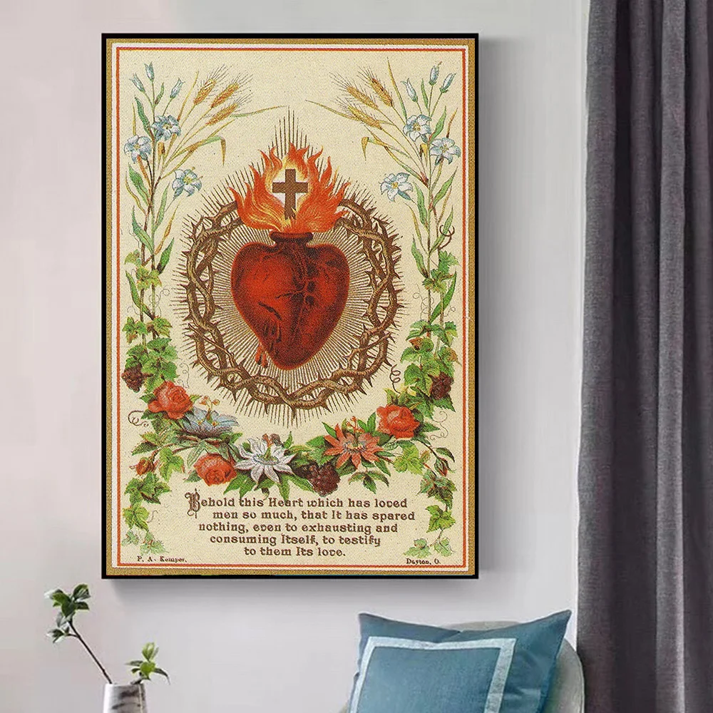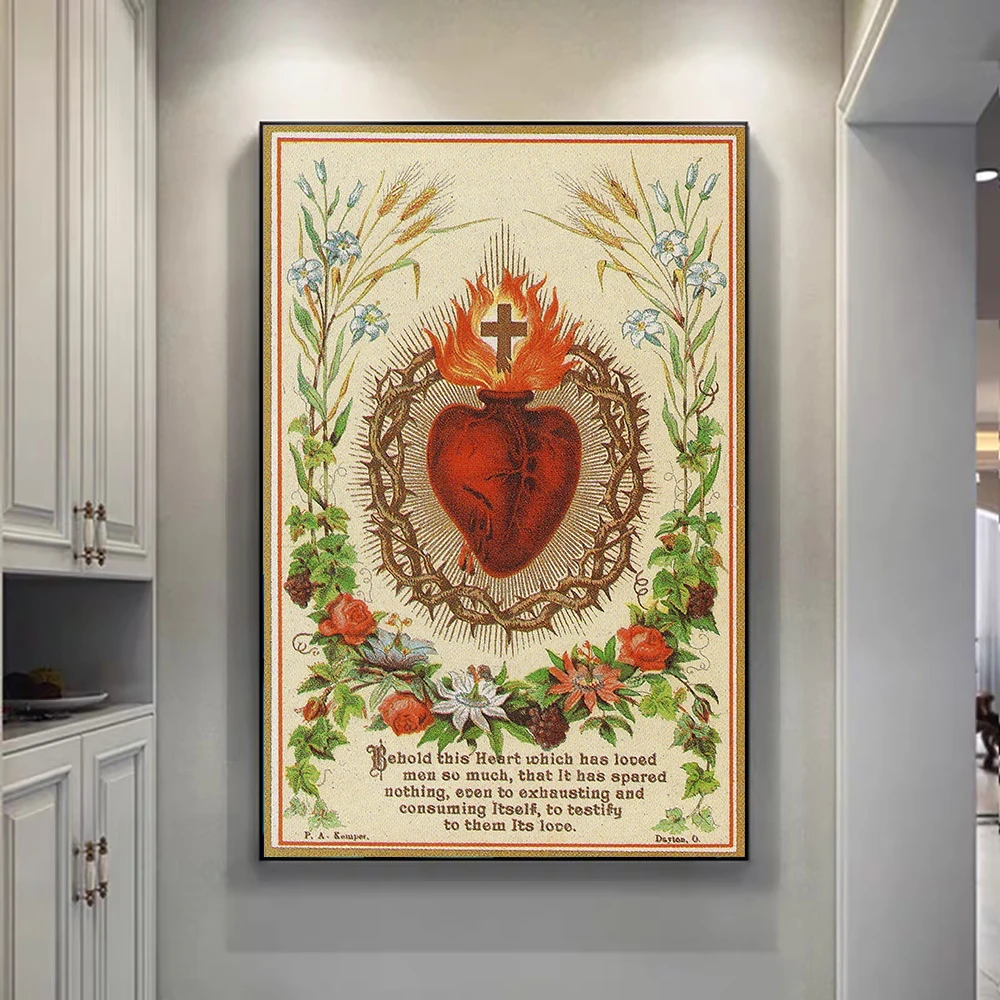 Картина на холсте с изображением Священного Сердца Иисуса, Постер и печать, Настенная картина для гостиной, домашний декор, КУАДРОС (без рамки)
