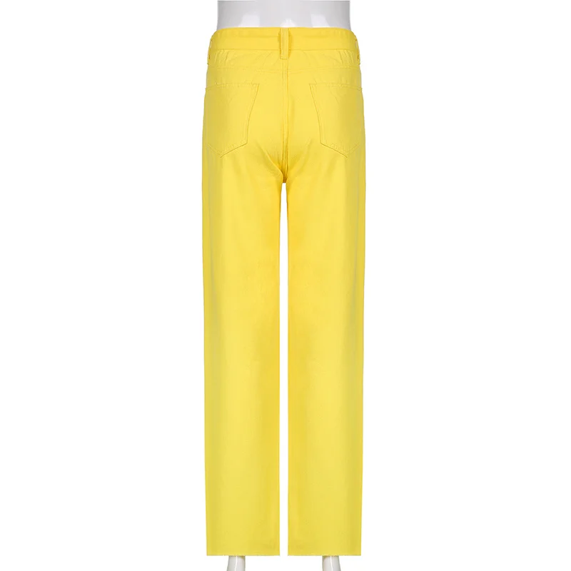 Желтые Женские винтажные летние джинсовые брюки Y2K с высокой талией, повседневные брюки, милые эстетичные джинсы Iamhotty