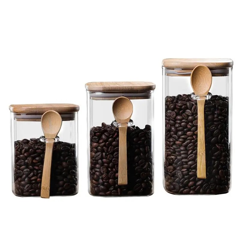 Герметичный Еда банка для хранения Стекло бобовая кофейная специя м...