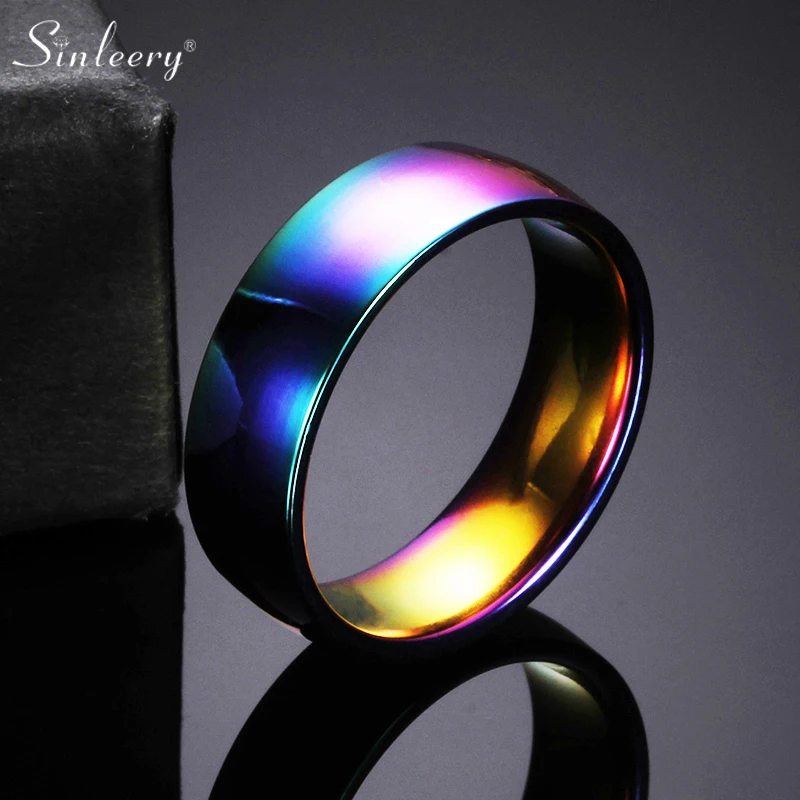 SINLEERY гладкое обручальное кольцо из нержавеющей стали радужного цвета парные кольца для мужчин модные ювелирные изделия широкие кольца 2021 Новинка JZ231 SSK