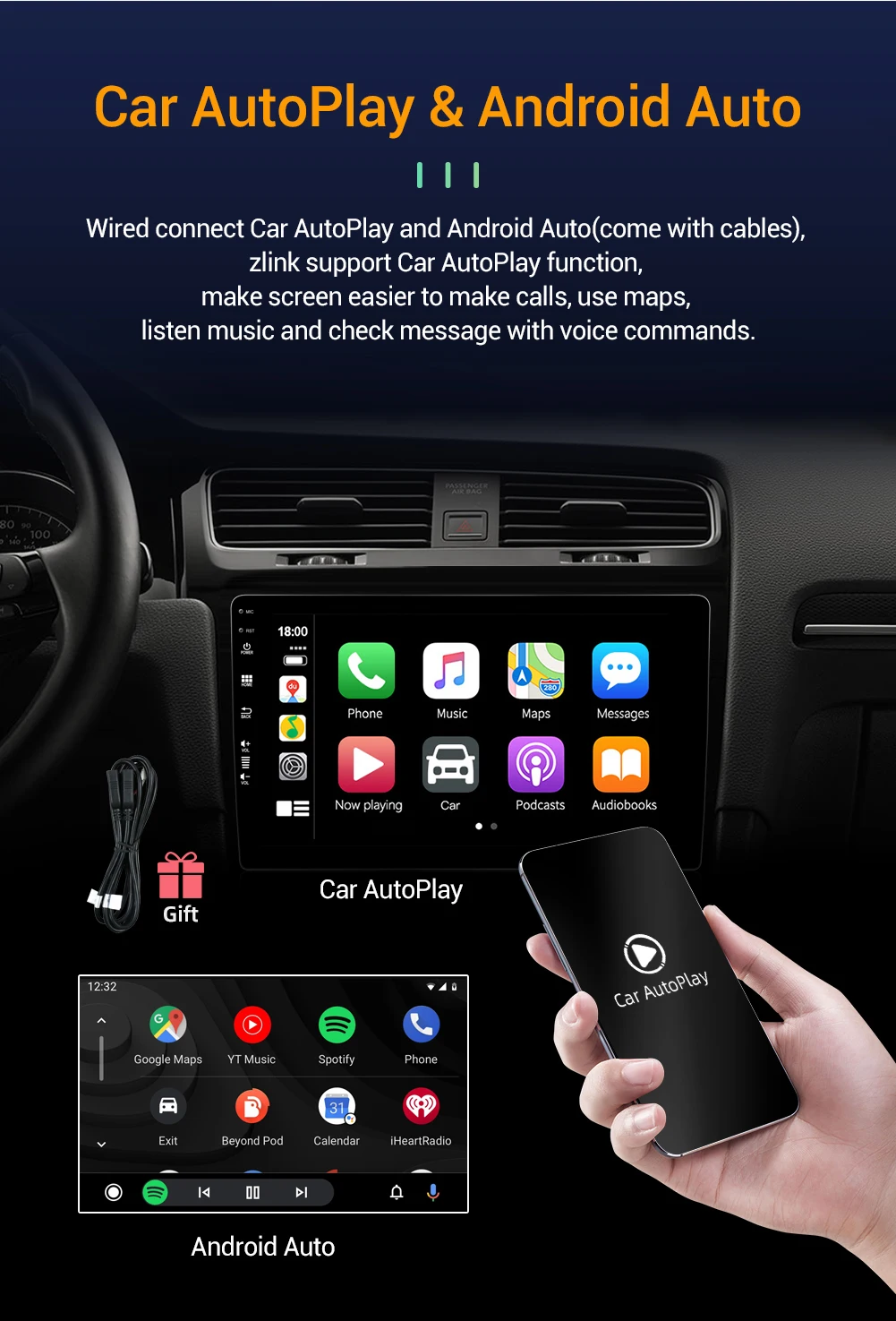 Free GiftsRear Camera,Built in map+External MIC