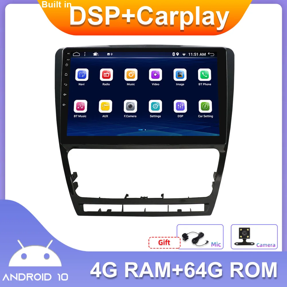 Автомагнитола 2 Din Android 10,0 для Skoda Octavia 2007-2014, карта OBD2 DAB + DVR сабвуфер DSP Carplay 1024*600 RDS