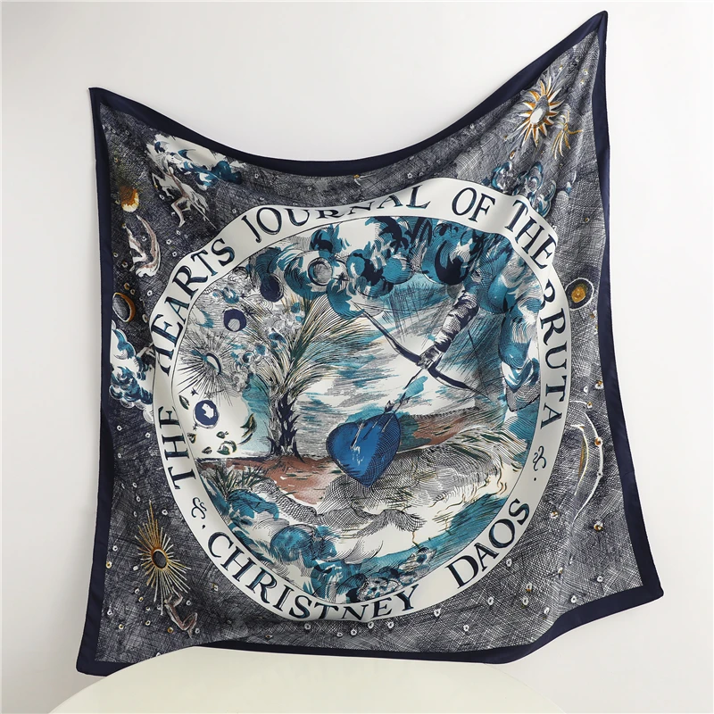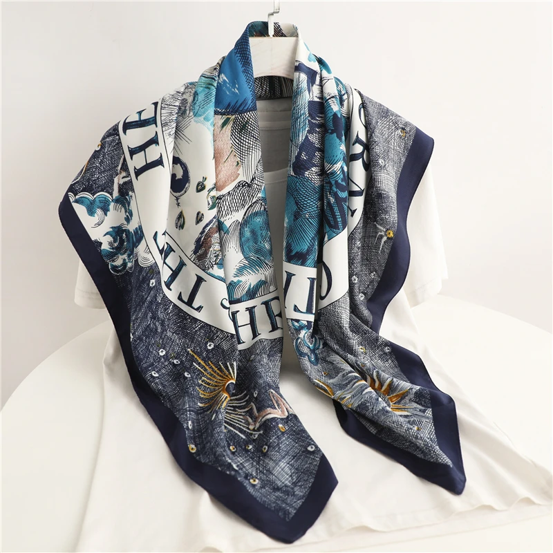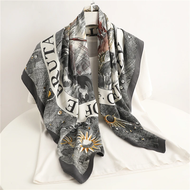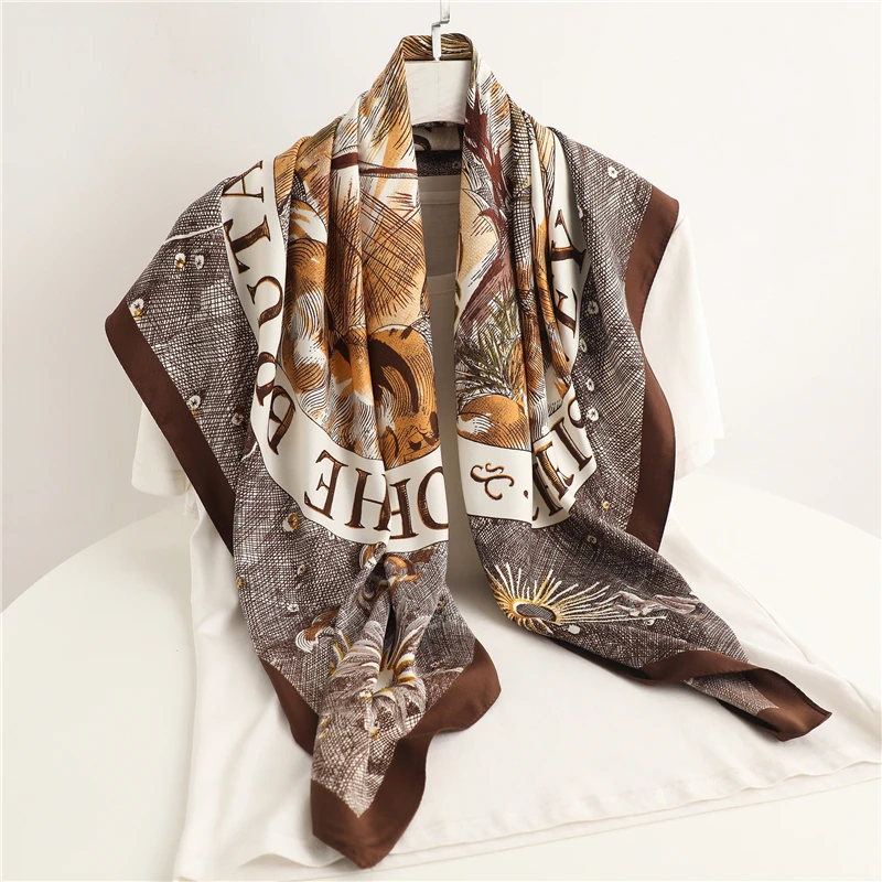 Роскошный саржевый шарф Хиджаб Женский Элегантный принт 90*90 см шаль оберточная Женская повязка на голову шейный платок бандана парео для девочек шейный платок