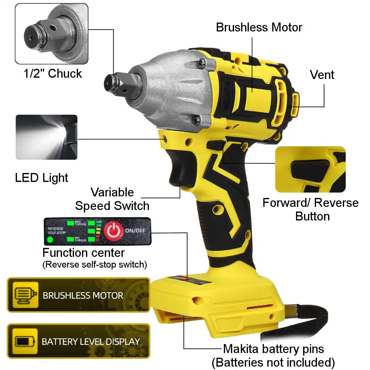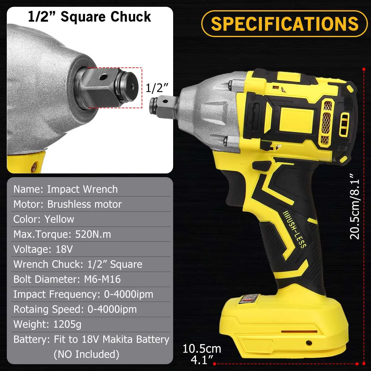18 в 520N.m. Литий-ионный беспроводной 1/2 дюймовый ударный ключ сменный драйвер для батареи Makita