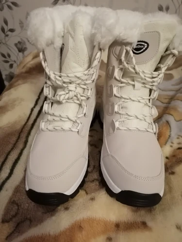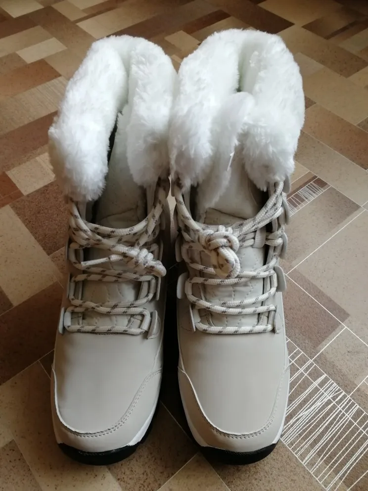 Я в восторге от этих ботинок.Элегантный дизайн -красивое сочетание отделки верха -белого цвета со светло-серым, опушка белым мехом .Он же и внутри ботинка.,что придает комфорт при носке. На 38 российский с вагусной деформацией размер подошел отлично.Понравилось отношение продавца -доброжелательность, внимание .Спасибо за подарочек.Доставка в течении 12 дней до Ростовской области .Очень надежная упаковка. Вобщем за все вам благодарна.Всего вам наилучшего и крепкого здоровья.