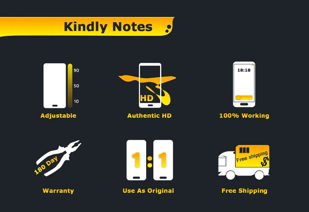 1. ЖК-экран хрупкий и высоко ценный, необходимо и важно снимать видео, когда вы распакуете посылка, и это будет действительным свидетельством, когда вы получите поврежденные ЖК-экраны или нехватку.