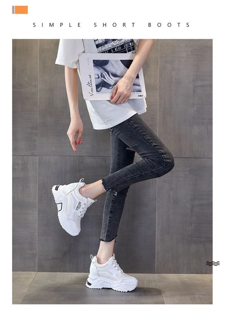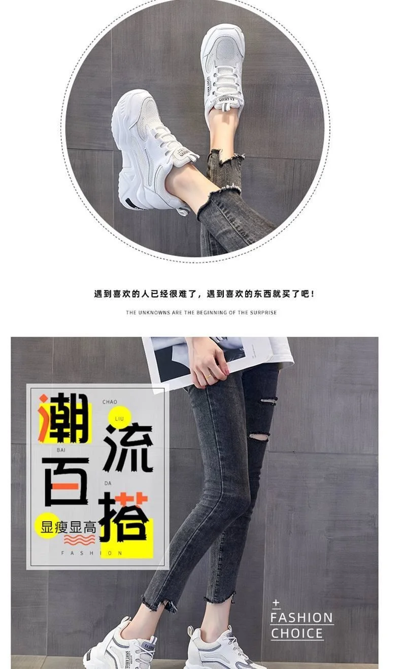 [Возвратная упаковка; Стоимость доставки] новая обувь на толстой подошве с высокой подошвой из сетчатого материала; Женская летняя обувь в Корейском стиле