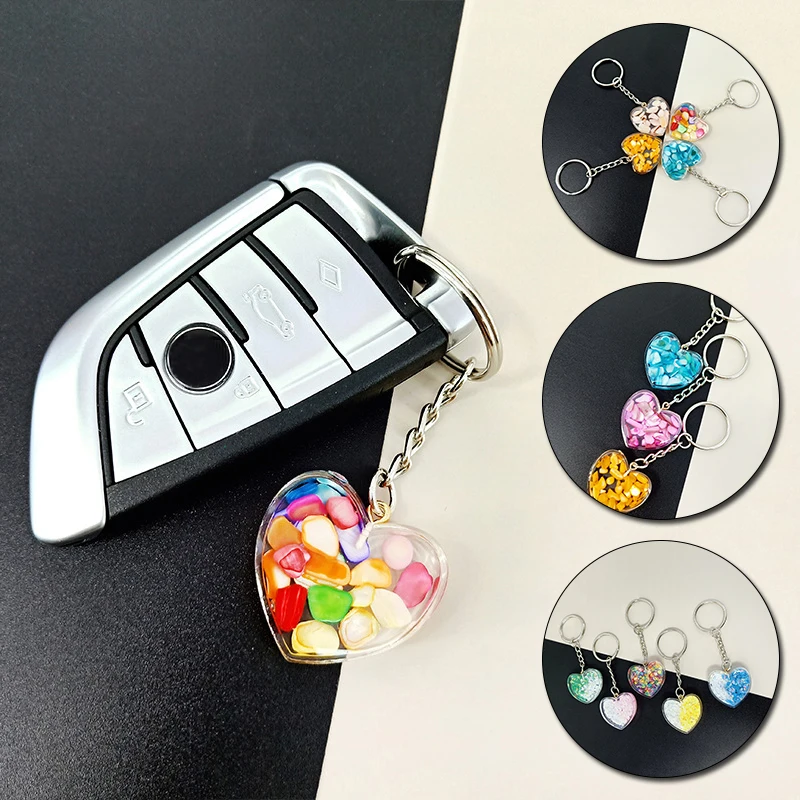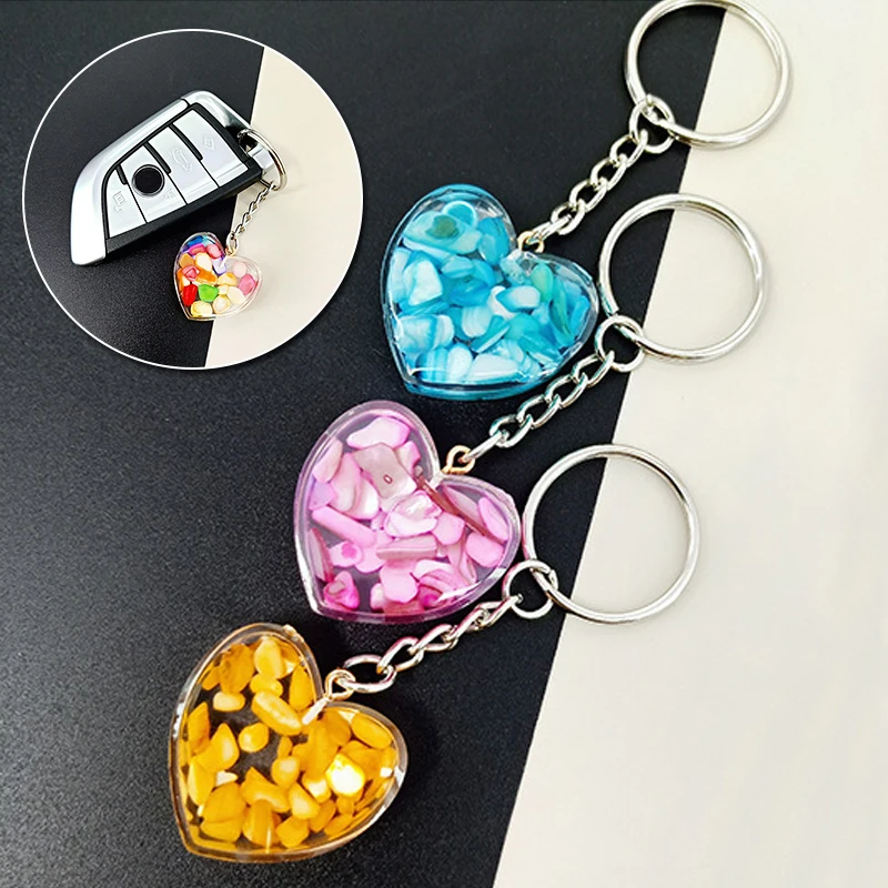 Милые брелоки в форме сердца, акриловые прозрачные Брелоки-кольца для ключей, брелок с блестками, очаровательный брелок для автомобиля, сумки, подарки, ювелирные аксессуары для пар