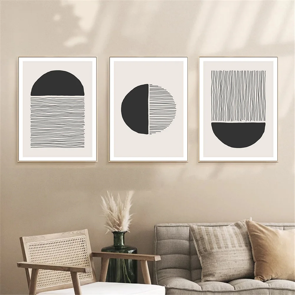 Абстрактная Геометрическая настенная Картина на холсте Солнце Луна река Пейзаж Плакат черная бежевая линия печать средневековый плакат домашний декор