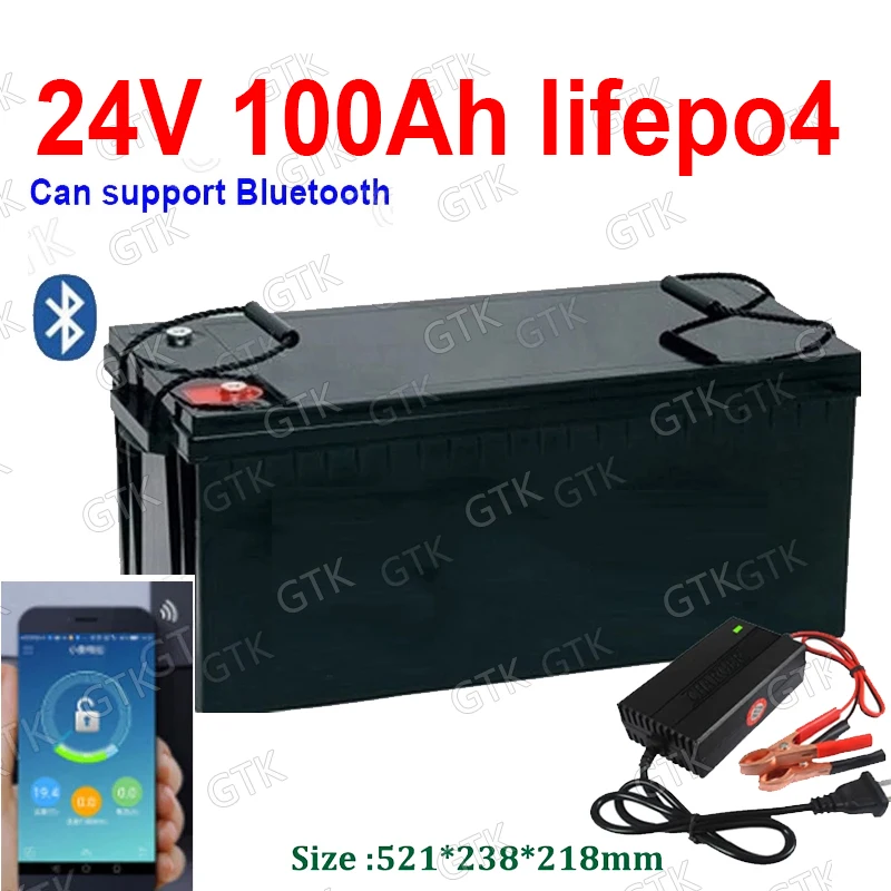 Водонепроницаемая литиевая батарея GTK 24 В 2400 Ач lifepo4 bluetooth BMS APP для автодомов Вт Солнечная энергия RV EV AGV + зарядное устройство 10 А