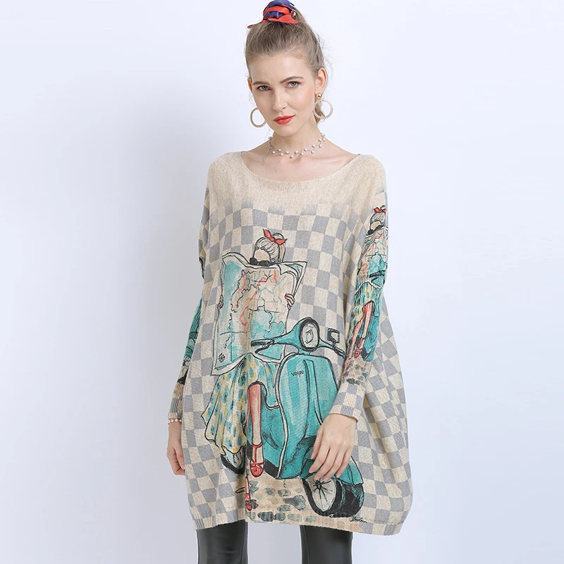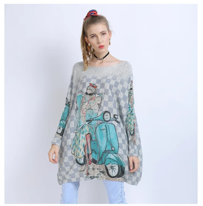 Свитер женский шерстяной, с принтом, с рукавами летучая мышь