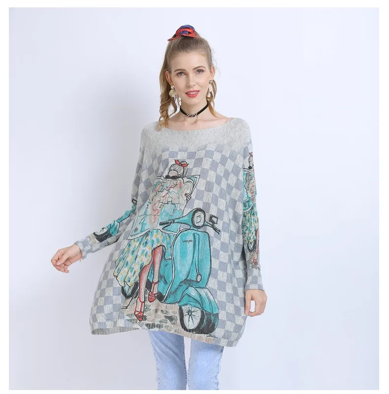 Свитер для женщин, Модные Изящные жаккардовый клетчатый мультфильмо...