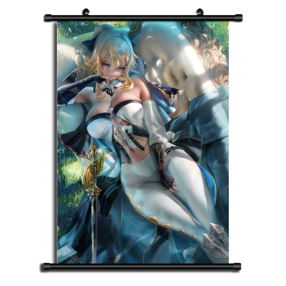 Постер Genshin Impact Jean аниме, ткань, настенный свиток, домашний декор, косплей, без цензуры