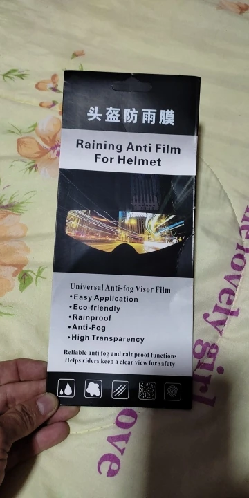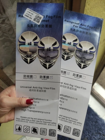 Он прибыл немного после других заказов, которые я сделал в тот же день, но это нормально, я заказал комплект (1 непромокаемый и 1 противотуманный) оба комплекта поставляются с небольшим набором для очистки и протирания козырька. Оба они работают. Однако, видимость не самая большая после того, как положить их так... Вот это. Но это определенно работает, мы увидим, как долго он длится