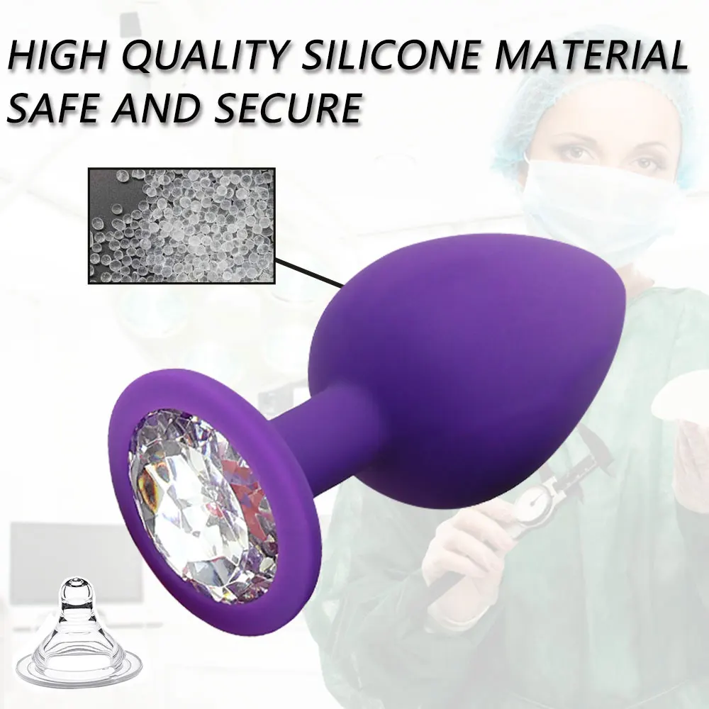 Анальная пробка, 3 размера, разные цвета, силиконовая, с кристаллам...