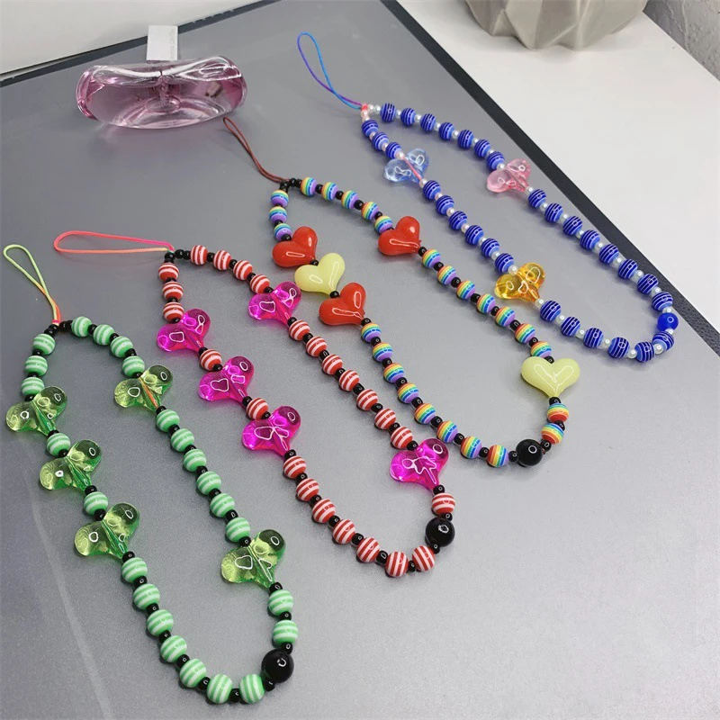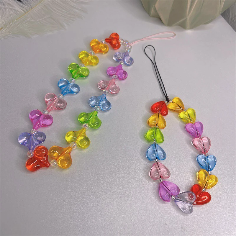Красочные акриловые сердца, прозрачные бусины-подвески для телефона...