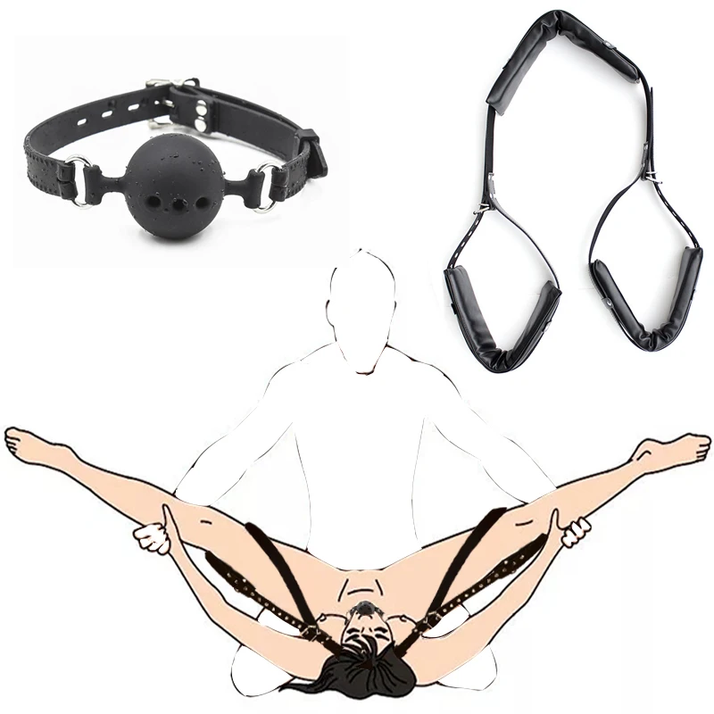 БДСМ Связывание бедра слинг разбрасыватель, кожаный ремень отрегулировать ноги открытый ремень, кляп для рта Сдержанность Фетиш рабство секс качели женщины SM игрушки