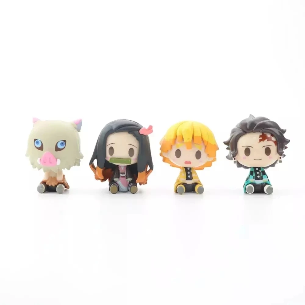 4 шт., аниме-фигурки, рассекающий демонов киметасу, кукла No Yaiba, Tanjiro Nezuko Zenitsu, рассекающий демонов, кавайное украшение для комнаты, детские игрушки