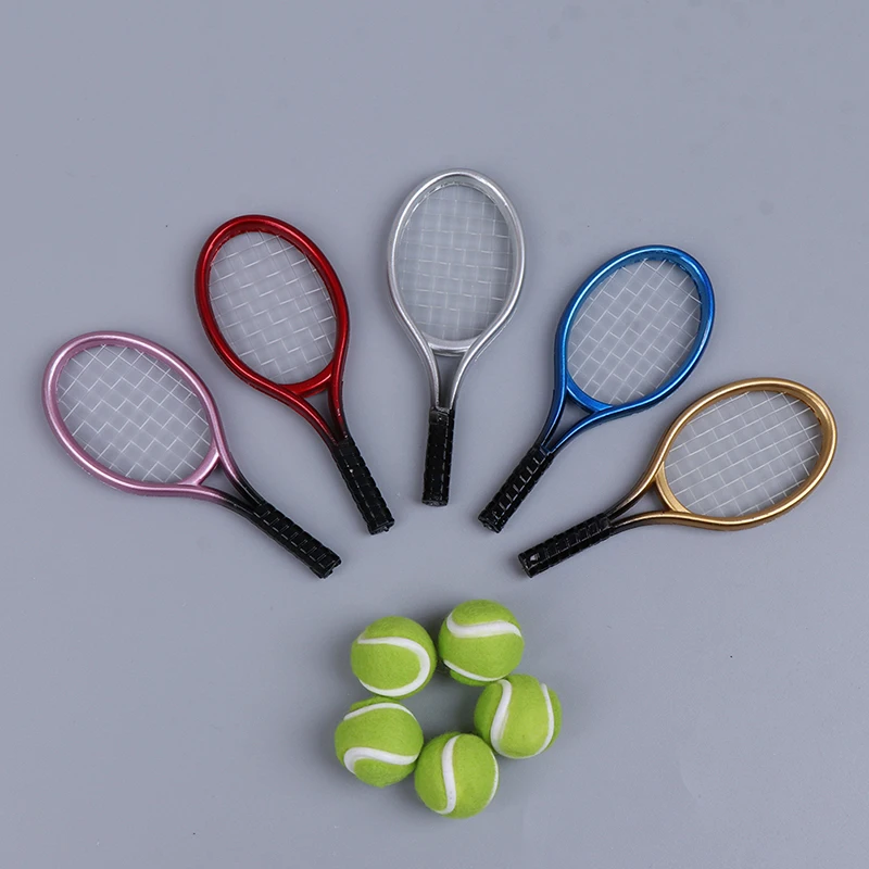 2 шт. 1:6 1:12 миниатюрная Теннисная ракетка для кукольного домика + аксессуары для кукол-мячей