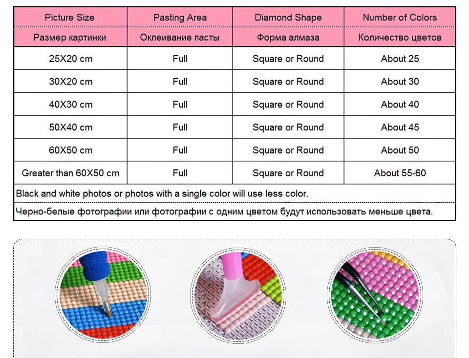 Покупатели должны прочитать: чем больше размер, тем лучше эффект; Тем больше размер, тем яснее детали. Если вы хотите получить более выгодные результаты, пожалуйста, выберите больший размер. Эти изделия полны бриллиантов, и весь экран будет покрыт алмазами, включая лицо и руки персонажей. Спасибо.