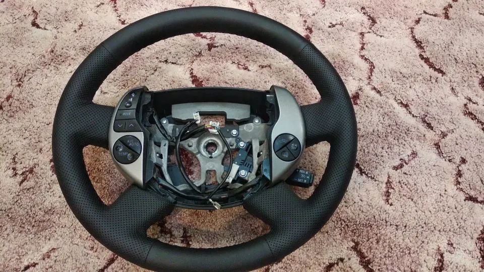 немного не хватили комплектных ниток (делал двойную), подошел на приус 20 америка не кожа. руль снимал, аккум не отключал.