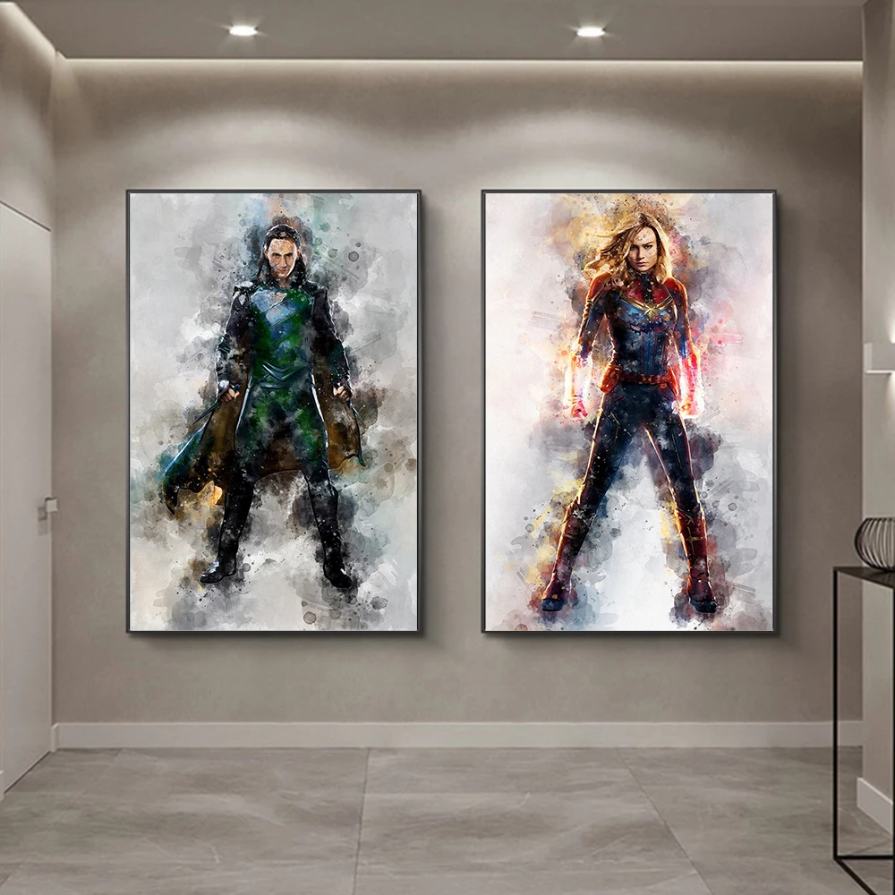 Акварельный постер Marvel, картина из фильма Железный человек, Мстители, супергерой, дым, холст, картина, печать, настенное искусство, картина для домашнего декора
