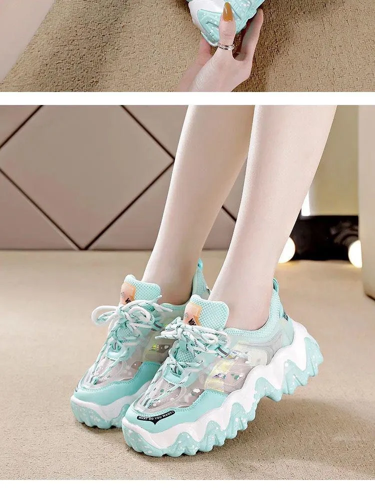 [Возврат упаковки за доставку] спортивная обувь женская обувь для папы с сетчатыми отверстиями Женская модная женская обувь лето 2021 г. Новая Универсальная дышащая обувь с вырезами