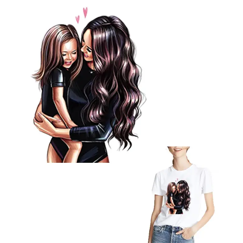 Термонаклейка на футболку Мама и девочка, стирающаяся термонаклейка, термонаклейка для женской одежды
