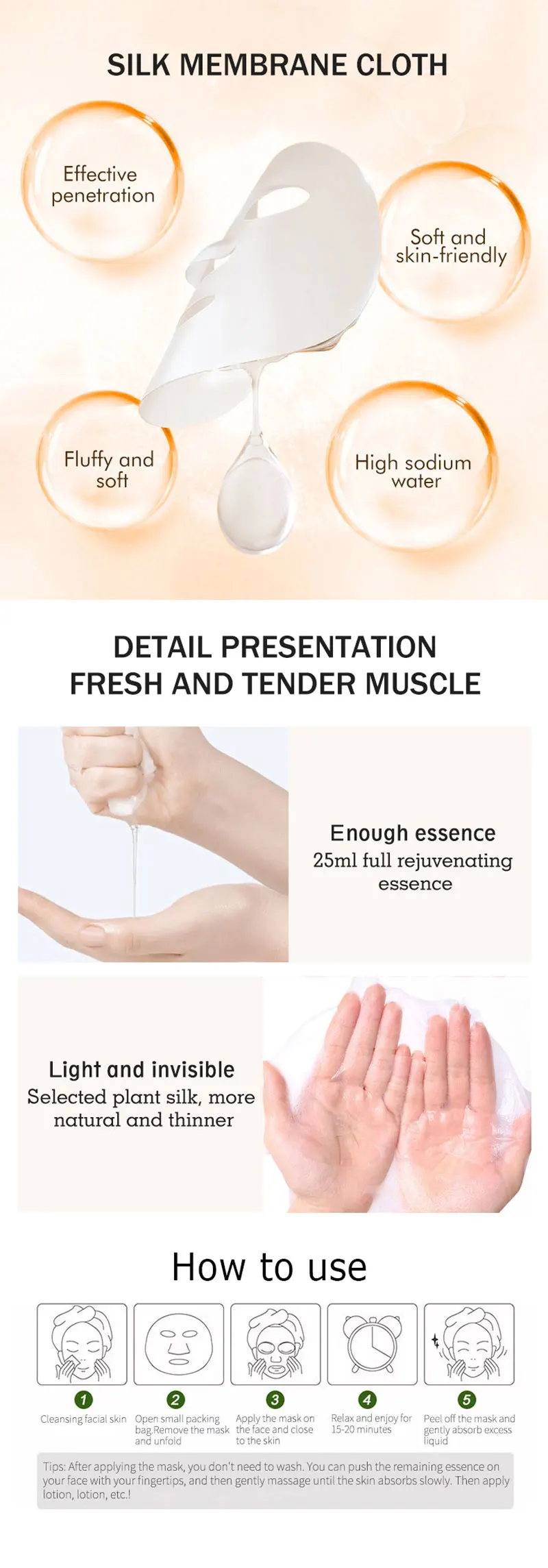 Название продукта: Argen масло для волос маска Коллагеновая маска с гиалуроновой кислотой алоэ салициловая кислота маска для лица Витамин C никотинамид маска нетто: 25 мл./шт. (содержит 5 шт) эффект: решаем проблемы лица. Например, на основе отбеливающих и увлажняющих эффектов, он может решить тусклые, серовато-желтые лица, морщины, пятна, шрамы от акне и увеличенные поры, а также регулировать баланс влаги и масла кожи, И повышают эластичность, предотвращают старение и ультрафиолетовые лучи. Как использовать: после очищения нанесите маску на лицо, погладьте лицо, чтобы оно было близко к лицу, а затем Оставьте маску на 15 минут. Используйте лосьон для лица после очищения, чтобы получить лучшие результаты.