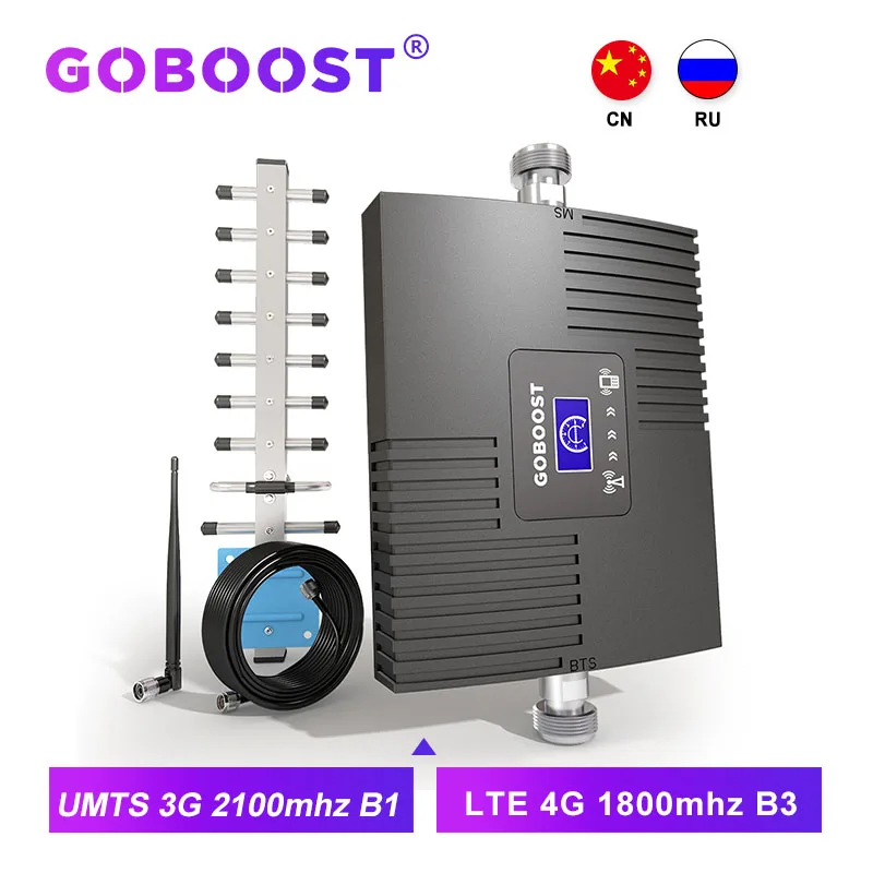 Усилитель сотовой связи GOBOOST UMTS 3G 2100 B1, усилитель сигнала сотового телефона LTE 4G 1800 МГц, комплект интернет-ретранслятора B3