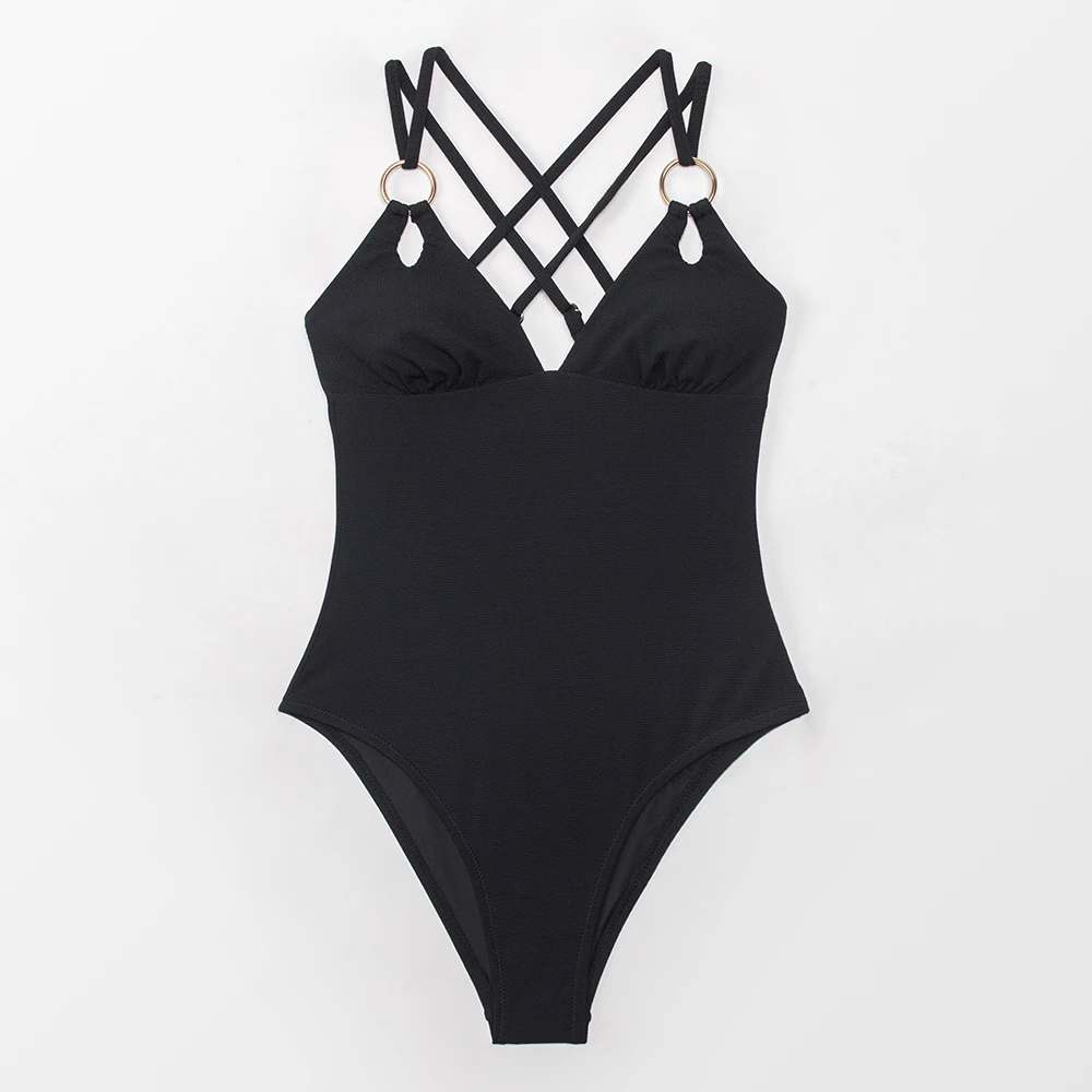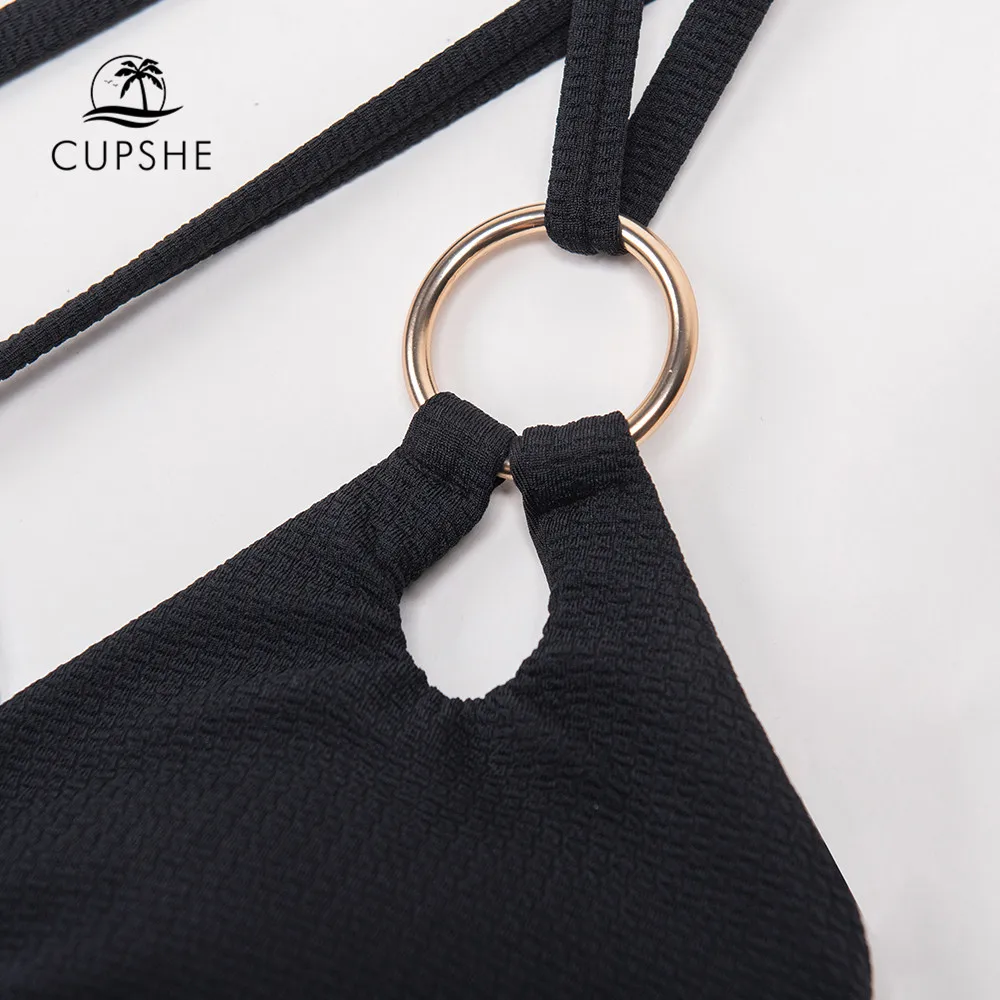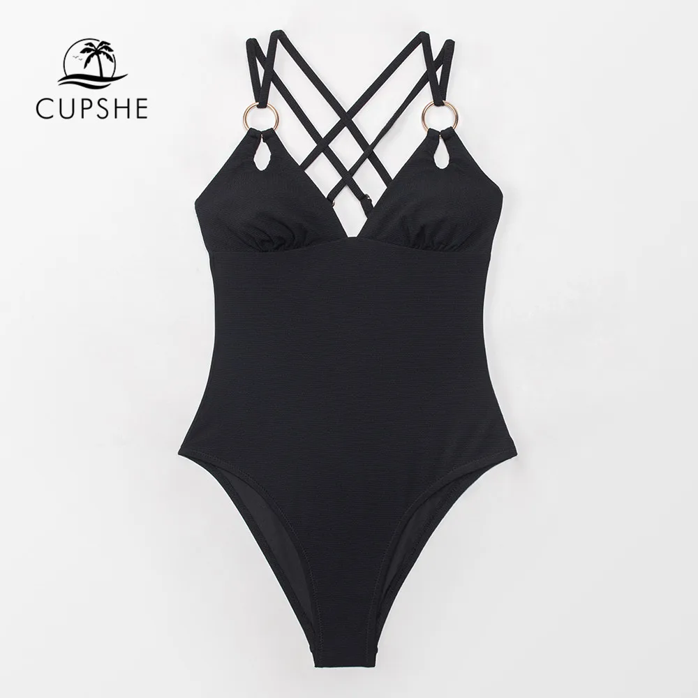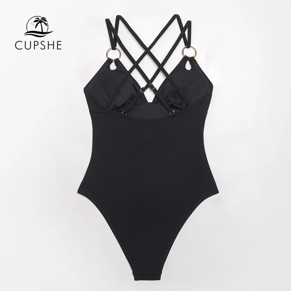 CUPSHE однотонный черный купальник с v-образным вырезом и круглым вырезом, Цельный купальник для женщин, сексуальный Монокини с перекрещивающимися ремешками на спине, 2022, пляжные купальные костюмы, купальники
