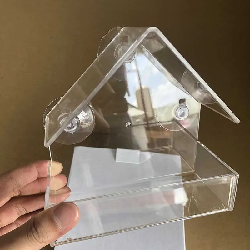 Прозрачная акриловая кормушка для птиц с присоской для сада, двора, наружное украшение, съемный скользящий лоток