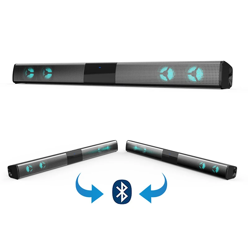Место в любом месте: супер тонкий корпус, вы можете использовать в качестве звуковой панели или 2 шт. стереодинамиков в соответствии с вашим домашним украшением. Эта компактная звуковая панель также может устанавливаться в спальнях и небольших помещениях.