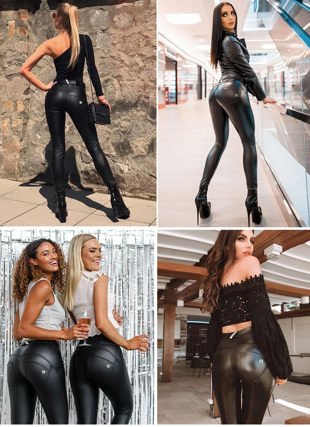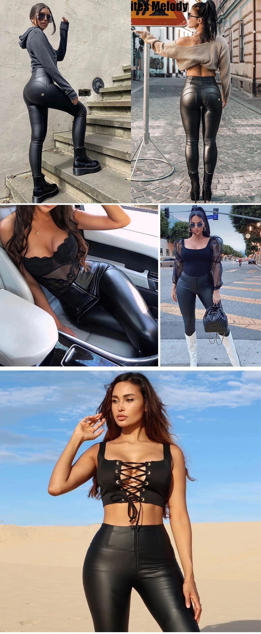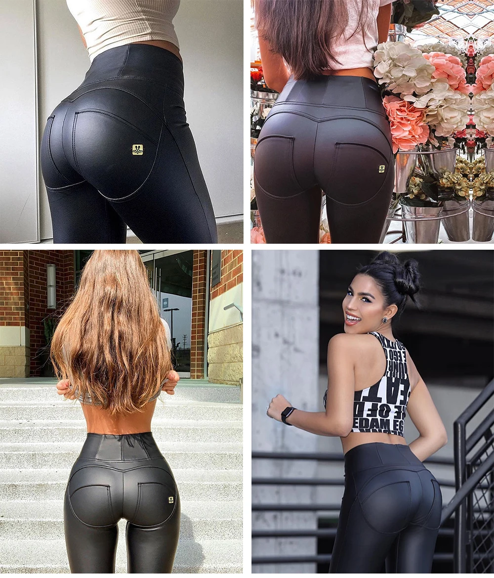 Женские блестящие колготки из искусственной кожи, эластичные кожаные брюки для тренировок, прямые штаны для ягодиц, Корректирующее белье полной длины