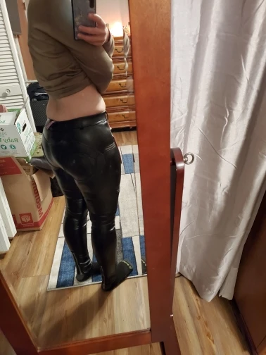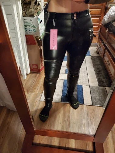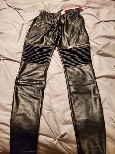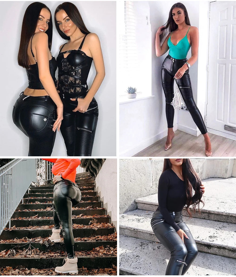 1. Кожаные брюки из искусственной лакированной кожи с облегающим дизайном.