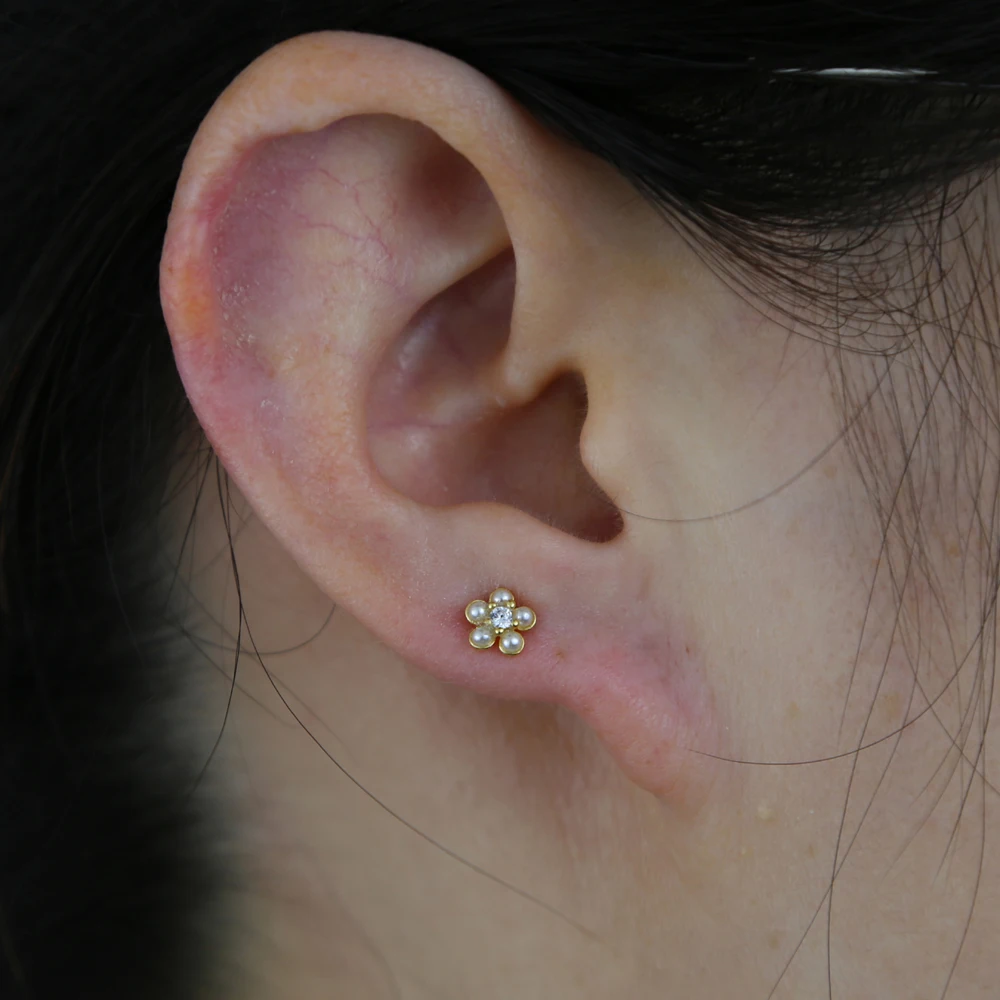 Позолоченные 925 пробы Серебристые 5 мм Крошечные Цветочные гвоздики, украшенные свежими жемчужинами, минимальный размер, мульти пирсинг, маленькие серьги для девочек