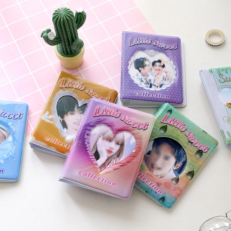 3-дюймовый фотоальбом Kpop, мультяшный подключаемый держатель для фотокарт, симпатичный пвх альбом с полым сердечком Love Polaroid, 64 кармана, коллекционер сумок для карт